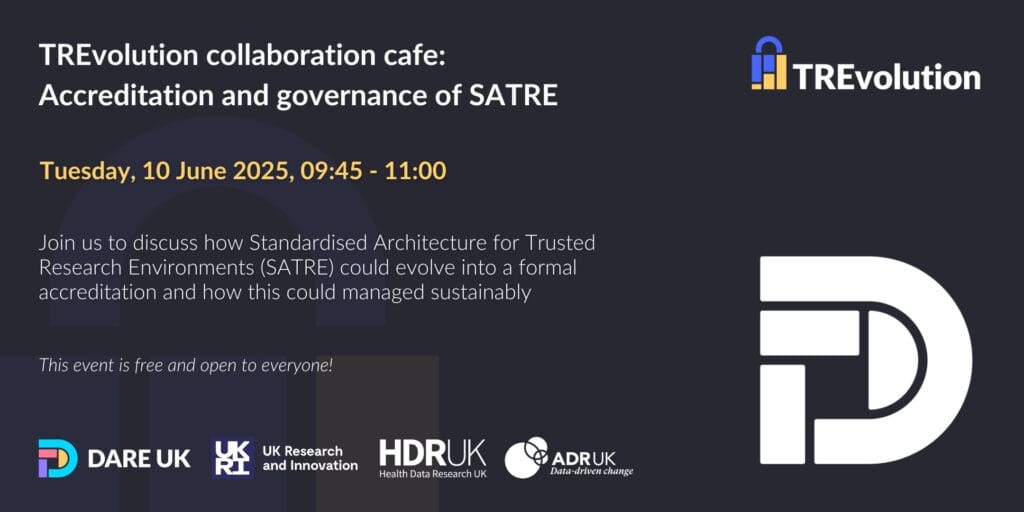 In this collaboration cafe, we’ll focus on how Standardised Architecture for Trusted Research Environments (SATRE) should become a formal accreditation, and on a long-term, sustainable governance model for SATRE.